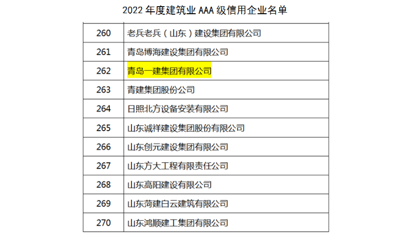 9月14日,中国建筑业协会官网发布《关于2022年度建筑业AAA级信用企业评价结果的公示》通知,集团公司荣获AAA级信用企业认证荣誉!